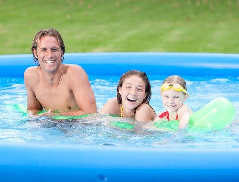 Бассейн легко и быстро устанавливается без применения технических средств. Технология SUPER-TOUGH дает стенкам бассейна тройную прочность. Стенки сделаны из трех отдельных слоев: два слоя плотного винила и один - внешний - полиэстр для особой прочности. Борта бассейна поддерживаются надувным кольцом, которое, по мере заполнения бассейна, поднимается вместе с уровнем воды, расправляя стенки. Сливной клапан легко присоединяется к садовому шлангу, т.е. слить воду можно в любое удобное место. Бассейн не нуждается в подготовке грунта. Рекомендован детям с 6 лет. Размер: 457*107см. Объем: 12 431 л. Вес: 40,6 кг.